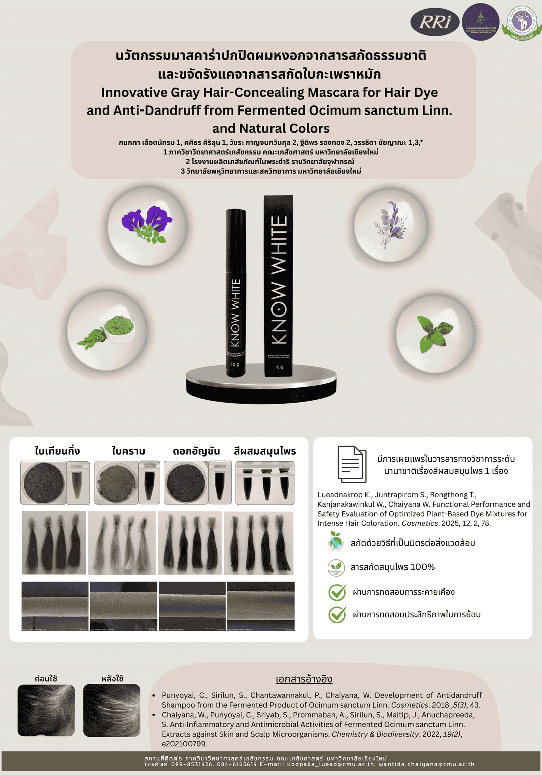 นวัตกรรมมาสคาร่าปกปิดผมหงอกจากสารสกัดธรรมชาติและขจัดรังแคจากสารสกัดใบกะเพราหมัก